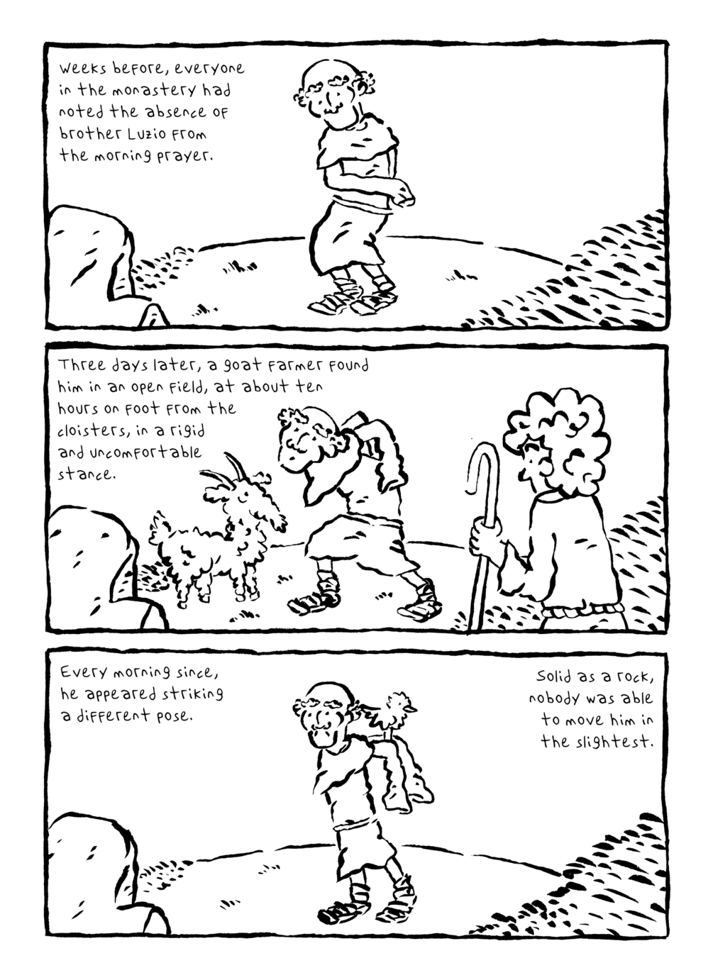 A medieval monk wakes up every morning in a different and strange pose. Who, or what, is visiting every night?